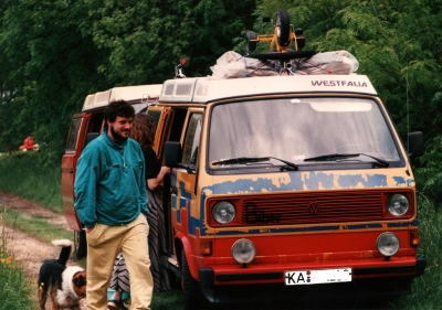 Immer dabei: Zwei Fahrräder dahinter, Einbauküche und zwei Schlafzimmer integriert, Atelierbeleuchtung, Sonnenterrasse und ein aufgesetztes Dreirad. Mobilität total.
