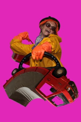 Fotomontage mit dem “Truck” (2006) des „Car Culture“-Künstlers Erwin Wurm