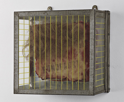 Wood, mirror, wax, paint, resin, hair, metal, glass (with silkscreen)